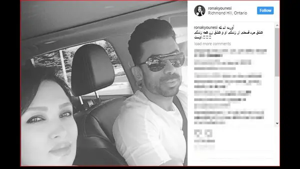 رکنا: روناک یونسی با انتشار عکسی در کنار همسرش از عشق مرد و زن گفت.