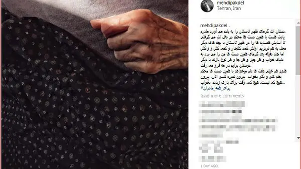 رکنا: مهدی پاکدل با انتشار پستی از از دلتنگی کودکی و آغوش مادرش گفت.