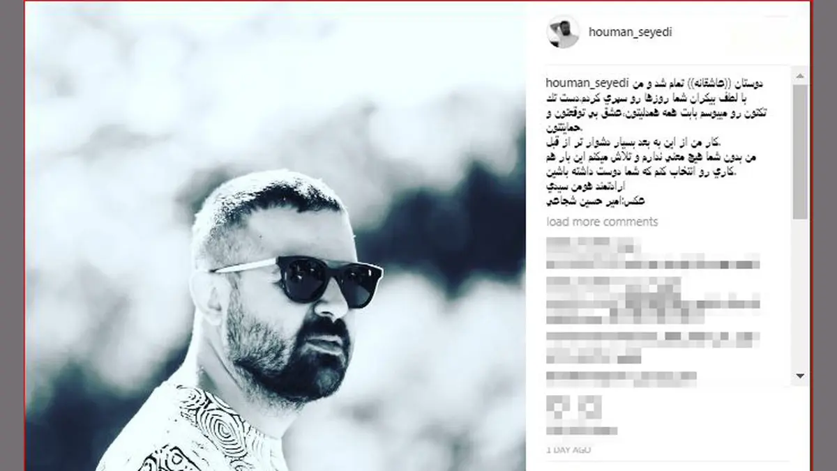 رکنا: هومن سیدی از طرفدارانش تشکر و از اتمام سریال عاشقانه گفت.