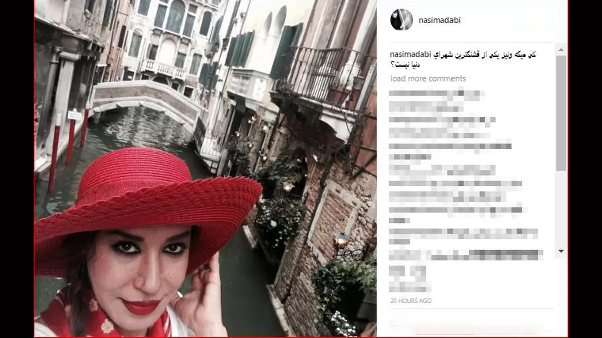 رکنا:نسیم ادبی عکسی با کلاه در ونیز ایتالیا در صفحه شخصیش منتشر کرد