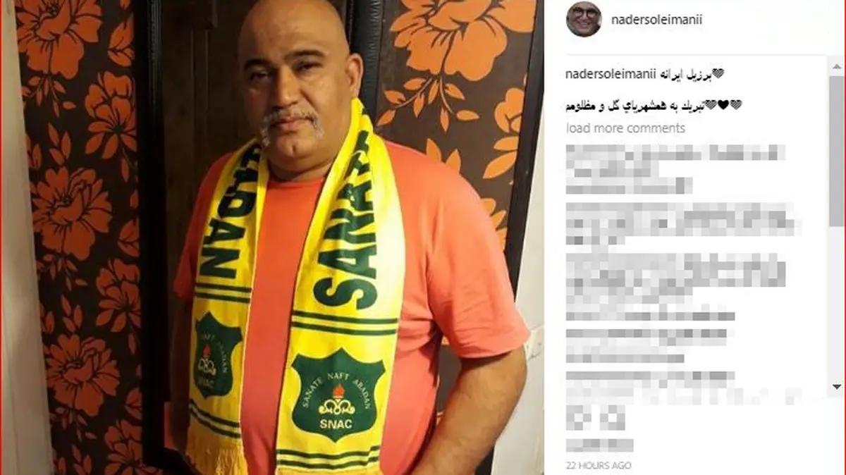 رکنا: نادرسلیمانی با انتشار عکسی در اینستاگرامش به همشهری های مظلومش تبریک گفت.