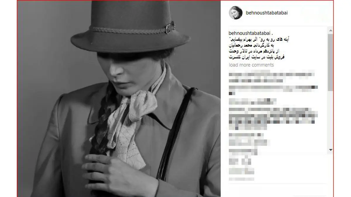 بهنوش طباطبایی با انتشار عکسی در صفحه اینستاگرامش از فروش بلیت آینه های رو به رو از 15 مرداد در سایت ایران کنسرت خبر داد.