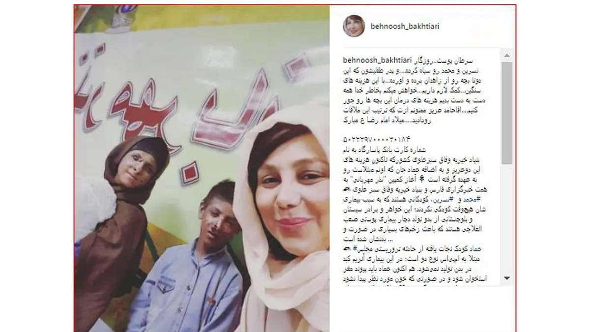 بهنوش بختیاری در کنار دو خواهر و برادر مبتلا به سرطان پیشرفته پوست+فیلم و عکس