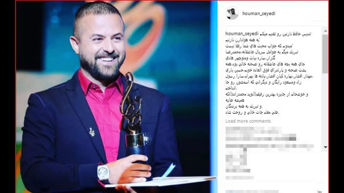 رکنا: هومن سیدی با انتشار عکسی از جشن حافظ تندیسش رابه هوادارانش تقدیم کرد.