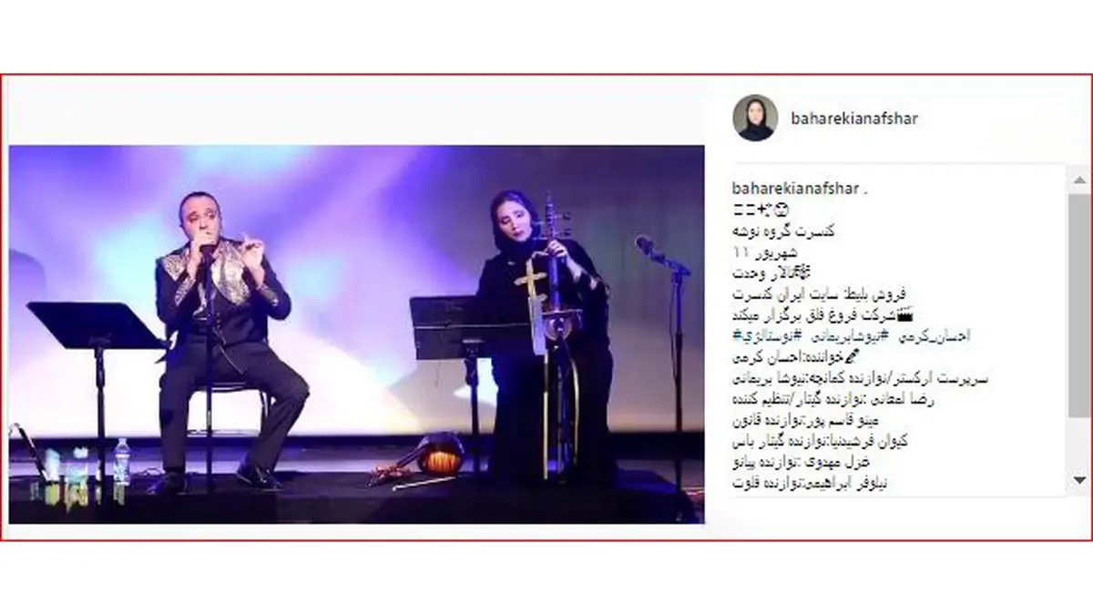 رکنا: بهاره کیان افشار پستی منتشر کرد و از اجرای کنسرت گروه نوشه با خوانندگی احسان کرمی در 11 شهریور خبر داد.