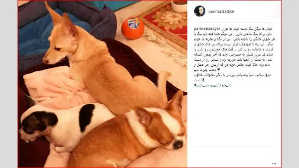 رکنا: پریناز ایزدیار عکسی از چند سگ در اینستاگرامش منتشر کرد و خواست تا با حیوانات مهربان باشیم.