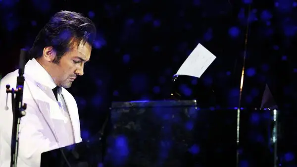 رکنا: حسام نواب صفوی بعد از نواختن پیانو در روز عید غدیر قطعه ای را به پدرش تقدیم کرد.