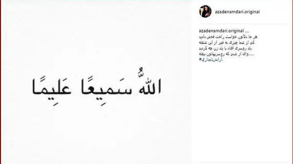 تازه ترین واکنش آزاده نامداری به حاشیه های اخیر /  واى از شبى که روسری هاتون بیفته