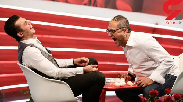 رکنا: لحظه شکستن تخم مرغ به سر رامبد جوان در برنامه زنده را مشاهده می کنید.