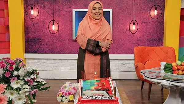 رکنا: ژیلا صادقی در پشت صحنه برنامه «نگی که نگفتی» شمع کیک ۴۴ سالگی خود را فوت کرد.