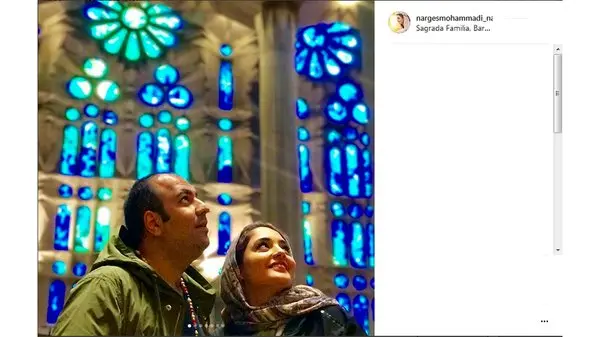 رکنا: نرگس محمدی عکسی را از ماه عسل اش در کنار علی اوجی در بارسلون منتشر کرد.