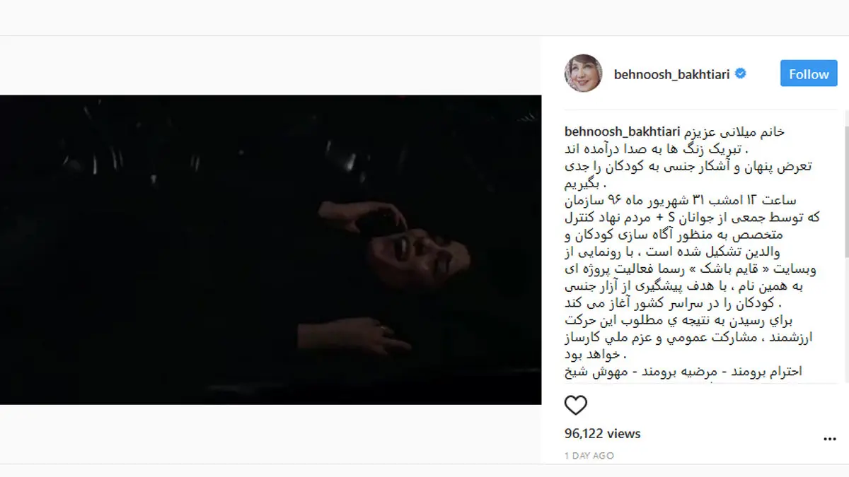 تبریک بهنوش بختیاری به تهمینه میلانی +فیلم