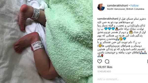 رکنا: سام درخشانی با انتشار تصویری از لحظه تولد دخترش، هوادارانش را سوپرایز کرد.