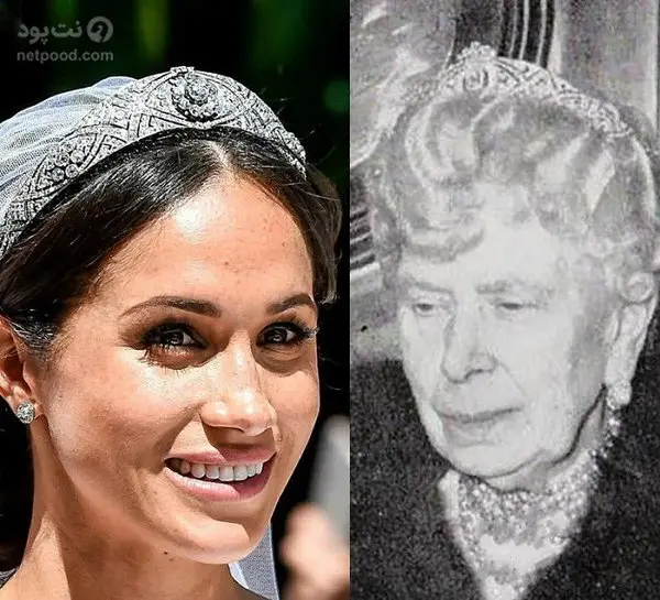 تاج مگان مارکل نیز متعلق به ملکه ماری (مادر بزرگ کویین الیزابت) بوده و بخشی از مجموعه جواهرات سلطنتی است. این تاج با الماس و پلاتینیوم در سال ۱۹۳۲ ساخته شده است، گل جدا شدنی وسط آن برای سال ۱۸۹۳ است.