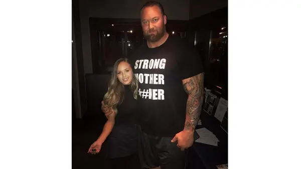 تمسخر قویترین مرد جهان بخاطر جثه کوچک نامزدش! + عکس