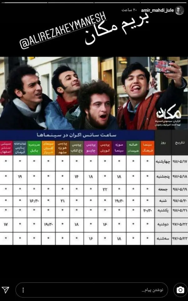 استوری جنجالی امیر مهدی ژوله درباره تماشای فیلم مکان در گروه هنروتجربه