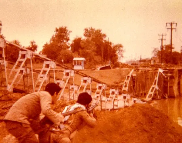 معصومینژاد در توضیح این عکسها گفت: این عکسها متعلق به روزهای اول تهاجم ارتش بعثی عراق به سوسنگرد است و تازه پل Bridge را زده بودند. همان پلی که در تصویر میبینید.