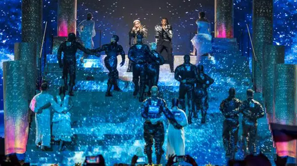 مدونا که هماکنون ۶۰ سال دارد، بیشک شرکت خود در این برنامه بزرگ موسیقی را اینگونه تصور نمیکرد. دهها میلیونها نفر در اروپا و سراسر جهان این برنامه را مستقیم دنبال میکردند.