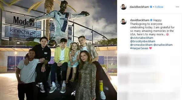 حوادث رکنا: دیوید بکهام بازیکن ستاره دنیای فوتبال در صفحه اینستاگرامش عکس خانوادگی جالبی را در کنار مجسمهاش منتشر کرد.