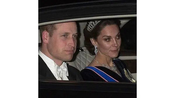 رکنا: کیت میدلتون با گردنبند قرضی جواهر نشان در مراسم مهمانی شام سفرا و دیپلماتهای ساکن انگلیس که در کاخ باکینگهام برگزار شد شرکت کرد.