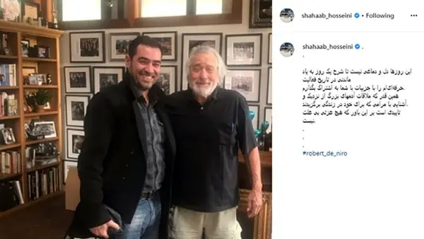 رکنا: شهاب حسینی در آخرین پست اینستاگرام خود عکس متفاوتی را در کنار رابرت دنیرو بازیگر معروف آمریکا منتشر کرد.