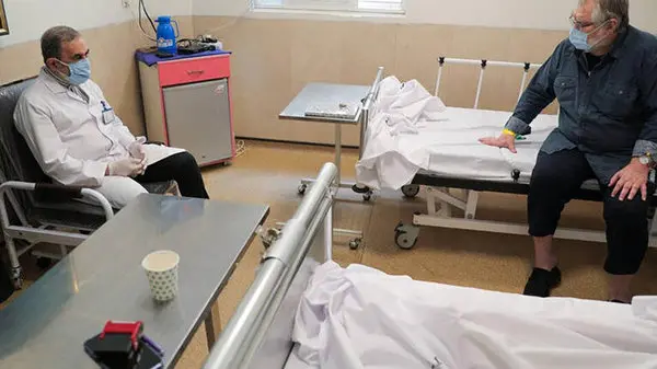 حال نادر طالب زاده بر روی تخت بیمارستان بعد از مبتلا شدن به کرونا / دکتر ولایتی به ملاقات او رفت + عکس
