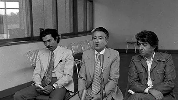 به گزارش گروه فرهنگی رکنا، عکسی قدیمی از بزرگان سینمایی، چون عزت الله انتظامی، فرخ غفاری و علی نصیریان در یک مصاحبه مطبوعاتی در اواخر دهه چهل ، در فضای مجازی منتشر شده است.