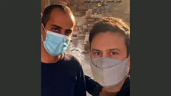 این بازیگر جوان نوشت: اومدیم کارگاه رفیق تولدش را سوپرایز کنیم. اوس حسین از خوبای تولید داخل.