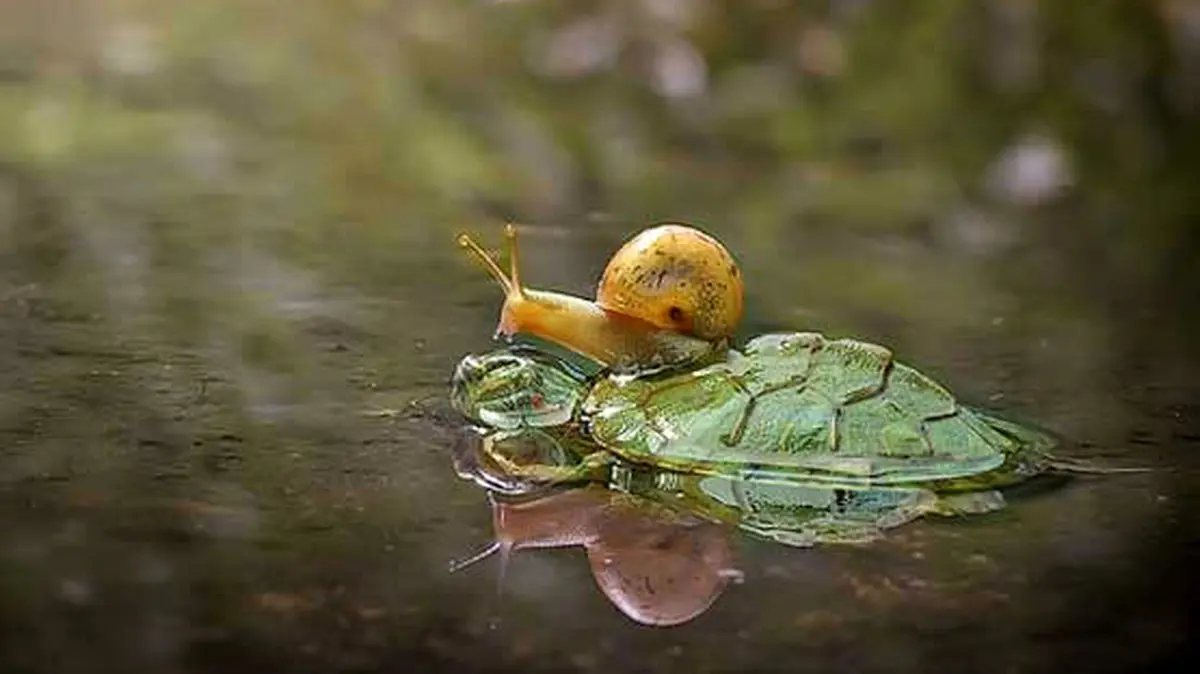 عکسی جالب از سواری گرفتن حلزون از لاک پشت!