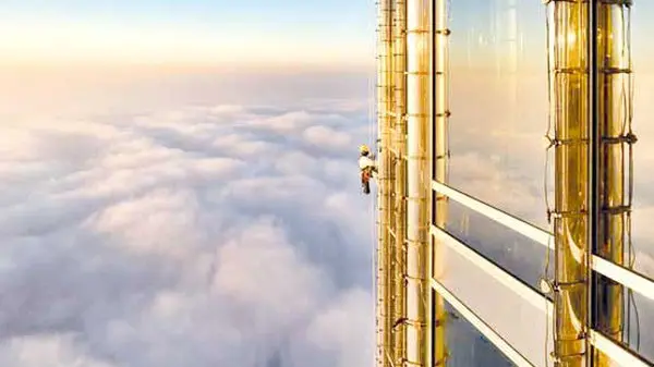 کارگری بالای بلند ترین آسمانخراش دنیا+عکس
