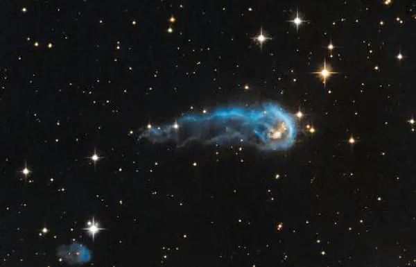 ستاره درخشان در اطراف خود سحابی آبی رنگی را بوجود آورده که دائم در حال چرخش است.