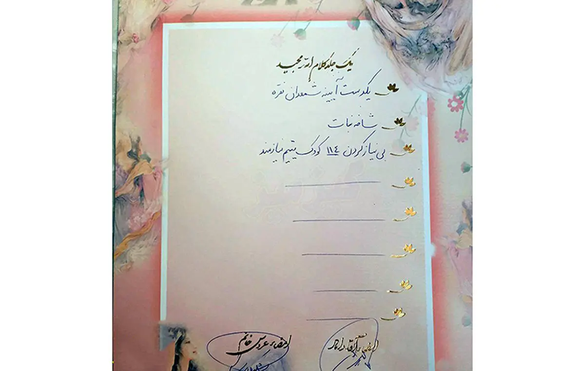 به گزارش خبرنگار رکنا ؛ یک جلد کلام الله مجید ، یک دست آیینه شمعدان ، یک شاخه نبات و بی نیاز کردن 114 کودک یتیم نیازمند ، مهریه عروس خانمی است که پای سفره عقد با آقا داماد پیمان همسری بست .