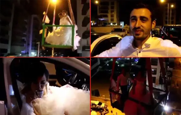 مراد سنگان به همراه همسرش اکین، به دلیل نقص فنی در آسانسور ساختمان شان در نخستین شب زندگی شان در آیدین، ترکیه مجبور شدند از یک بالابر استفاده کنند. آنها پس از خروج از خودروی شان با یک کابین فلزی تزیین شده با روبان های صورتی مواجه شدند. این زوج که در ابتدا نمی دانستند چه شخصی این امکان را برای شان فراهم کرده متعجب شدند. مراد سنگان به دلیل ترس از ارتفاع از ورود به کابین ممانعت می کرده که با صحبت همسرش برای سوار شدن متقاعد می شود. آپارتمان این زوج در طبقه هفتم ساختمان واقع شده، بنابراین شرکتی که این واحد را به آنها فروخته به دلیل نقص فنی پیش آمده در آسانسور زوج جوان را با استفاده از کابین با چشم انداز زیبایی در نخستین شب زندگی شان شگفت زده کرد. مدیر این شرکت ابراهیم دلن این برنامه را سازماندهی کرده بود چراکه وی نمی خواست شب عروسی این زوج خاطره تلخی را برای آنها رقم زند. وی اذعان داشته آسانسور دچار مشکل شده بود که به هیچ وجه قادر به تعمیر آن در اسرع وقت نبودند، بنابراین این سرویس را به این زوج جوان ارائه داد. برای ورود به کانال تلگرام ما کلیک کنید.