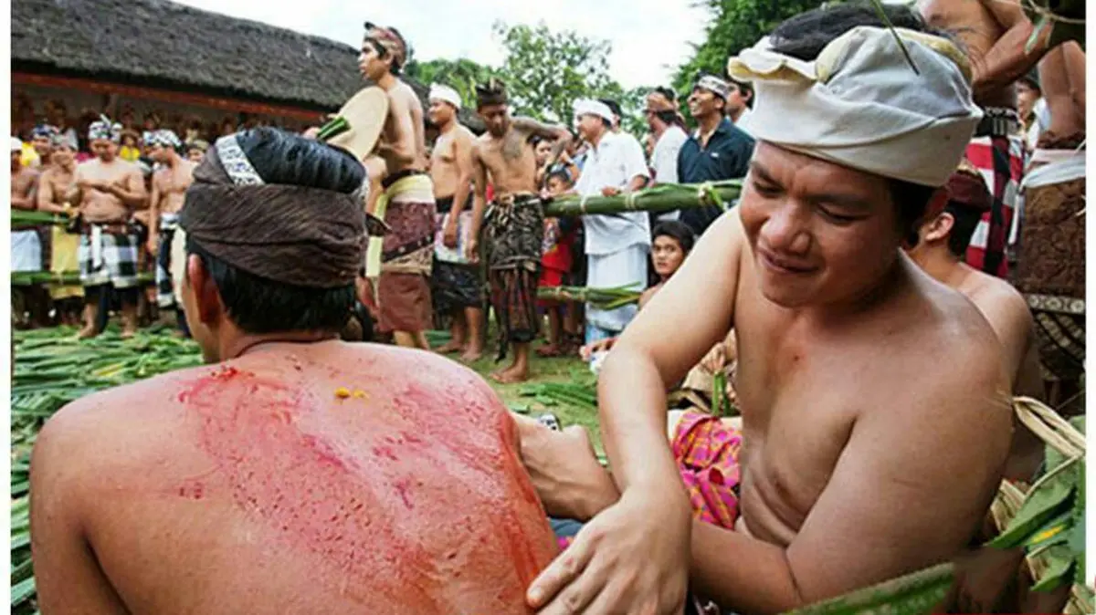در جریان جشن های موسوم به"اوزابا سامبا"در جزیره "بالی" اندونزی نوجوانان جزیره در آئینی سنتی با برگهای در هم پیچیده "پاندانوس" با هم مبارزه می کنند.