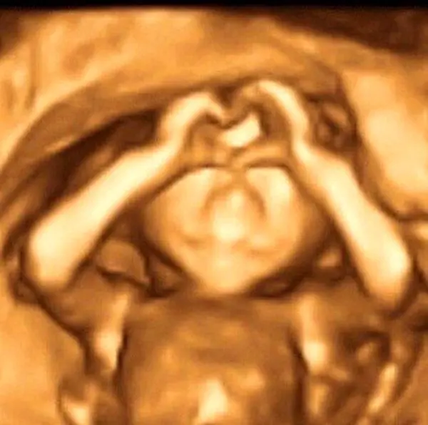 رکنا: در این سونوگرافی، جنین به طرز شگفت آوری علامت عشق و محبت را با دستان خود نشان می دهد.