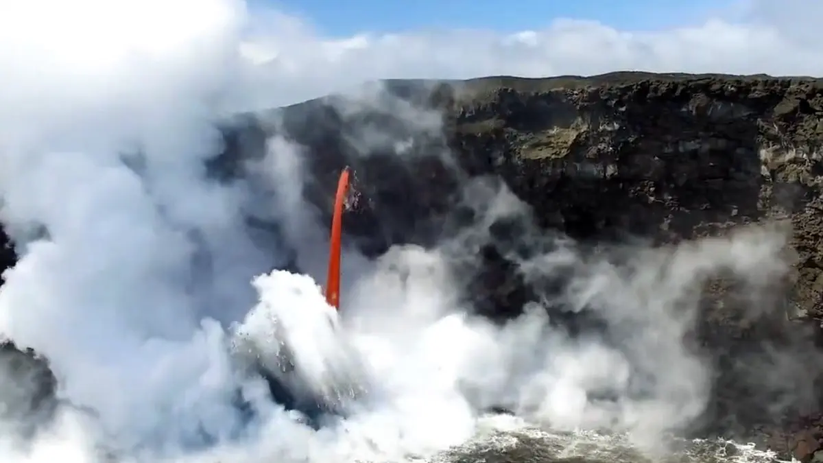 رکنا: فعالیت آتشفشان هاوایی و سرازیرشدن گدازههای آن به اقیانوس آبشاری از گدازه خلق کرده است.این پدیده بر اثر ریزش صخره به وجود آمده است.