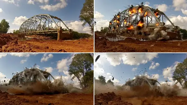 این ویدیو لحظه ی شگفت آور و باورنکردنی از فرو ریختن پل است که با دوربین گوپورو با حرکت آهسته فیلم برداری شده است و به بینندگان اجازه می دهد تا چگونگی فرو ریختن آن را مشاهده کنند.