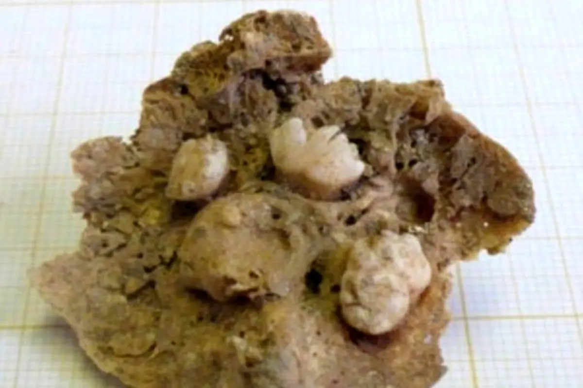 محققان توده آهکی این تومور را نزدیک ناحیه لگن زنی کشف کردند که هنگام مرگ بیش از 45 سال داشته است.