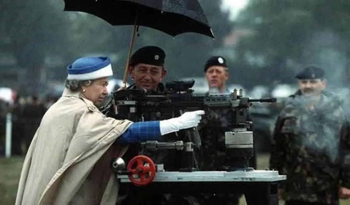 این عکس متعلق به 24 سال پیش، ملکه الیزابت دوم را در حال شلیک با اسلحه L85 در یک پادگان نظامی انگلستان در سال 1993 نشان می دهد.برای ورود به کانال تلگرام ما کلیک کنید.
