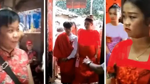در ویدئویی که از این مراسم منتشر شده داماد و عروس لباس هایی به رنگ قرمز بر تن کرده و از این وصلت خوشحال به نظر می رسند.