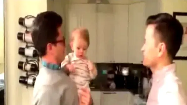 این نوزاد بعد از اینکه در آغوش پدر است با دیدن عمویش فکر می کند او پدرش است و می خواهد به آغوش وی برود و وقتی دوباره در آغوش عمویش است با دیدن پدرش همین فکر را می کند و در نهایت با حالت گیج کننده ای مدام به عمو و پدرش که با هم دوقلو هستند نگاه م یکند و نمی تواند پدر واقعی اش را پیدا کند.