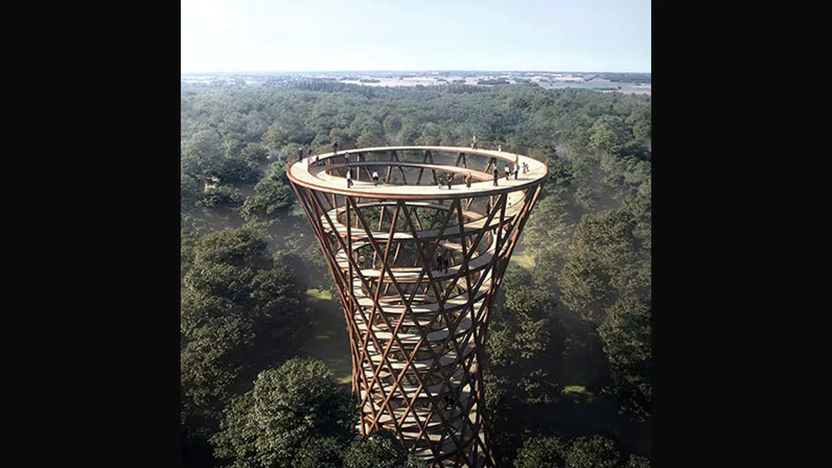 رکنا: در جنگل های جنوبی دانمارک سازه ای مارپیچی معروف به برج مشاهده ساخته شده که بازدیدکنندگان را در طبیعت اطراف غوطه ور می کند.