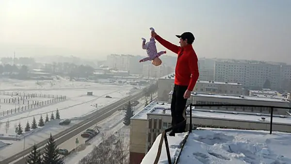 «رومن آر» یکی از اهالی شهر «زلنوگورسک» در سیبری روسیه است. او در حالی که بازوی خود را به دور شکم دختر شش ماه هاش حلقه کرده و او را بیرون از پنجره خودروی پرسرعت بی ام و نگه داشته، به حرکت خود با سرعت بالا ادامه میدهد. او ویدئوی این اقدام پرخطر را با عنوان «بدون صندلی» در شبکههای اجتماعی منتشر کرده است.