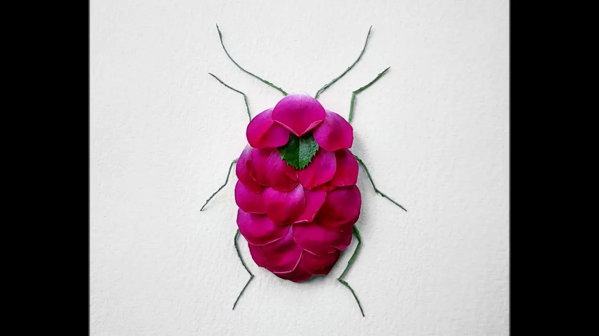 هنرمند Raku Inoue با قرار دادن انواع مختلف برگ های گیاهان و گلبرگ ها و شکوفه های زیبا ترکیبی ظریفی از گونه های حشرات درست کرده است که شامل حشراتی همچون ؛ سوسک , پروانه و غیره .