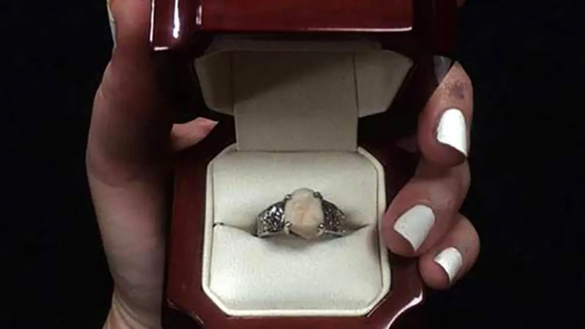 زوج کالیفرنیایی “کارلی لیفکیس” و “لوکاس آنگر” در شب هالووین با هم نامزد شدند در حالی که حلقه انتخابی عروس خانم با حلقه های که تاکنون دیده اید تفاوت دارد.نگین این حلقه بزرگترین الماس جهان یا هر سنگ قیمتی دیگری نیست و در حقیقت دندان عقل آقای داماد است!