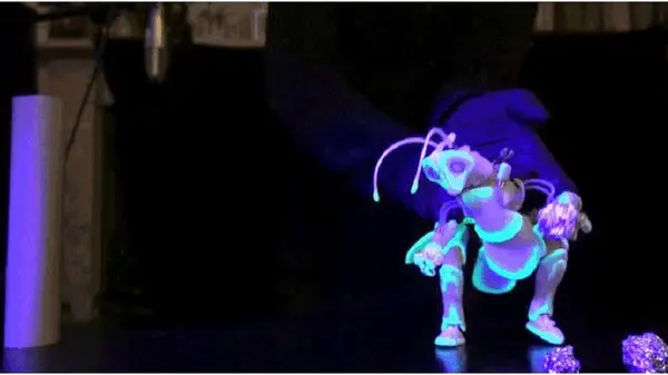 این بندها باعث می شوند تا این حشره عروسکی همانند موجود زنده رفتار کند و حرکات اغراق آمیز و کارتونی که در دیگر عروسک های انگشتی شاهدش هستیم را به طور کلی منتفی نماید.