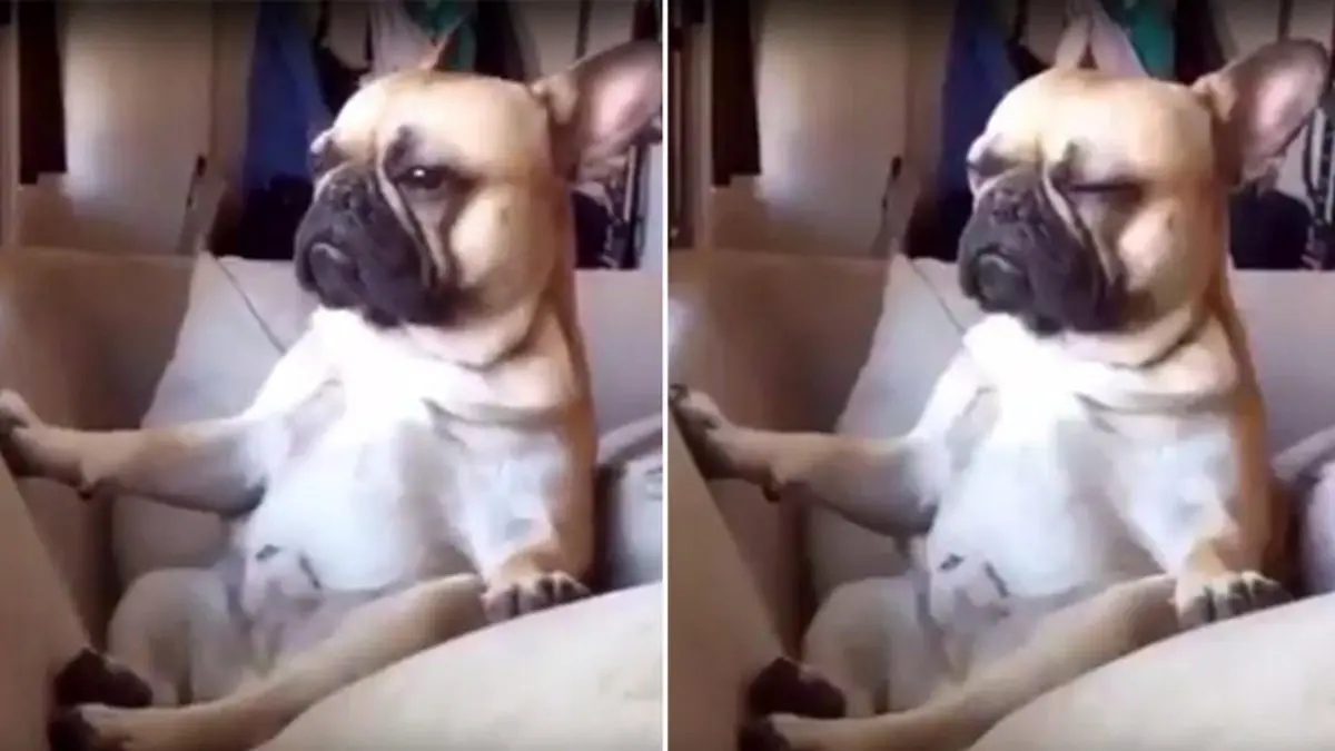 رکنا: فیلم بسیار جالب از نشسته خوابیدن یک سگ این روزها سوژه فضای مجازی شده است.