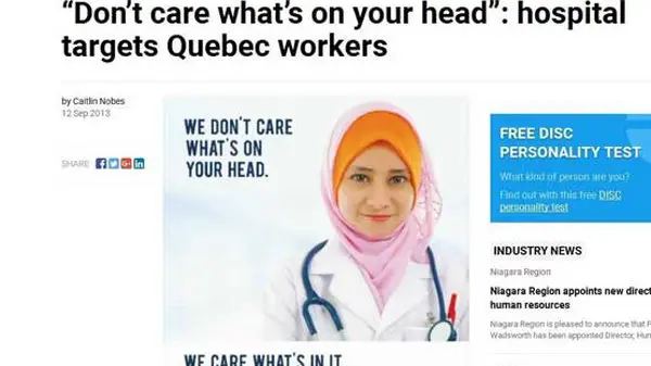 بر اساس گزارش CBC، این بیمارستان در یک روزنامه دانشجویی در دانشگاه McGill شیوهای برای تبلیغ آگهی ارائه داد که شامل خانمی است که از پوشش روسری استفاده کرده است.