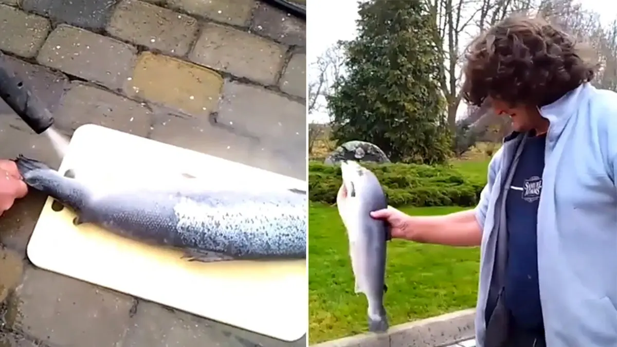 روشی عجیب برای کندن پولک های ماهی + فیلم