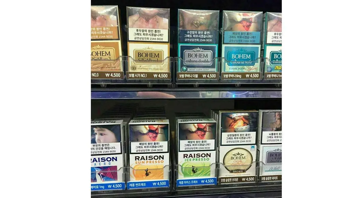 پاکت سیگار و تصاویر هولناک روی آن در سئول + عکس
